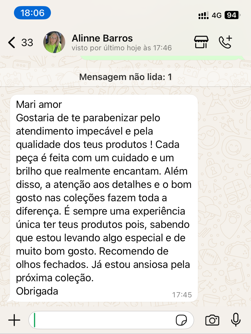 Criações autorais que celebram a força da mulher, a beleza dos detalhes e o poder da afetividade. Cada peça é feita à mão para ser sentida, usada e lembrada.